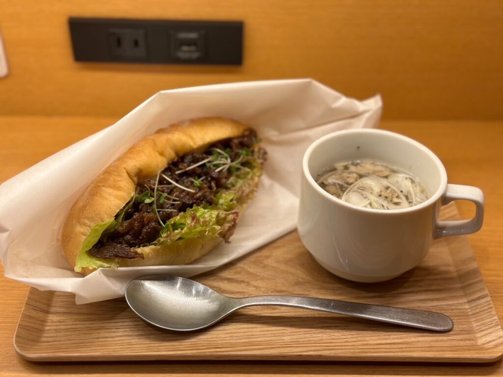 ここで食べれるのが絶品の牛タンソーセージドックです!(セットのスープも絶品☺️)